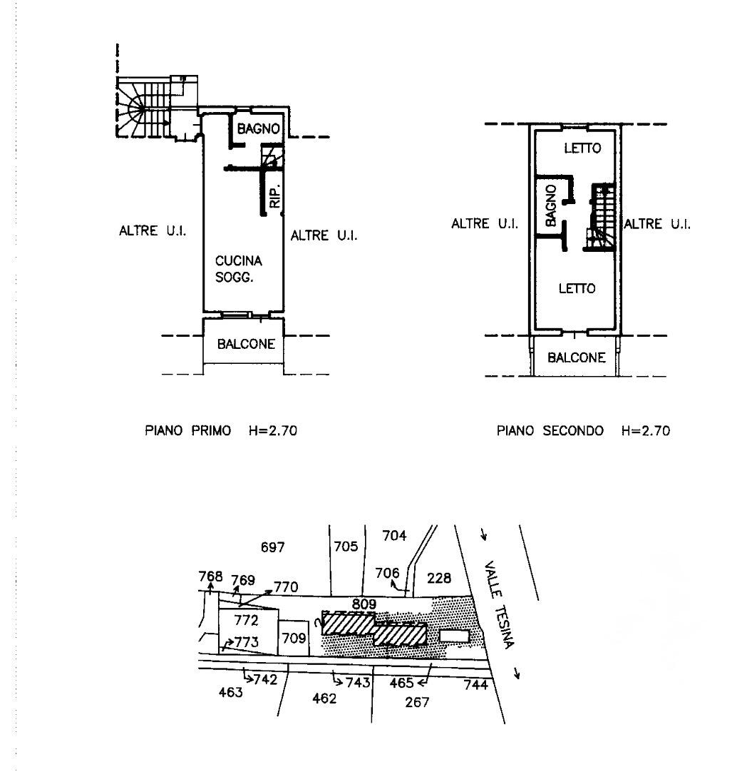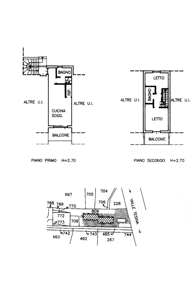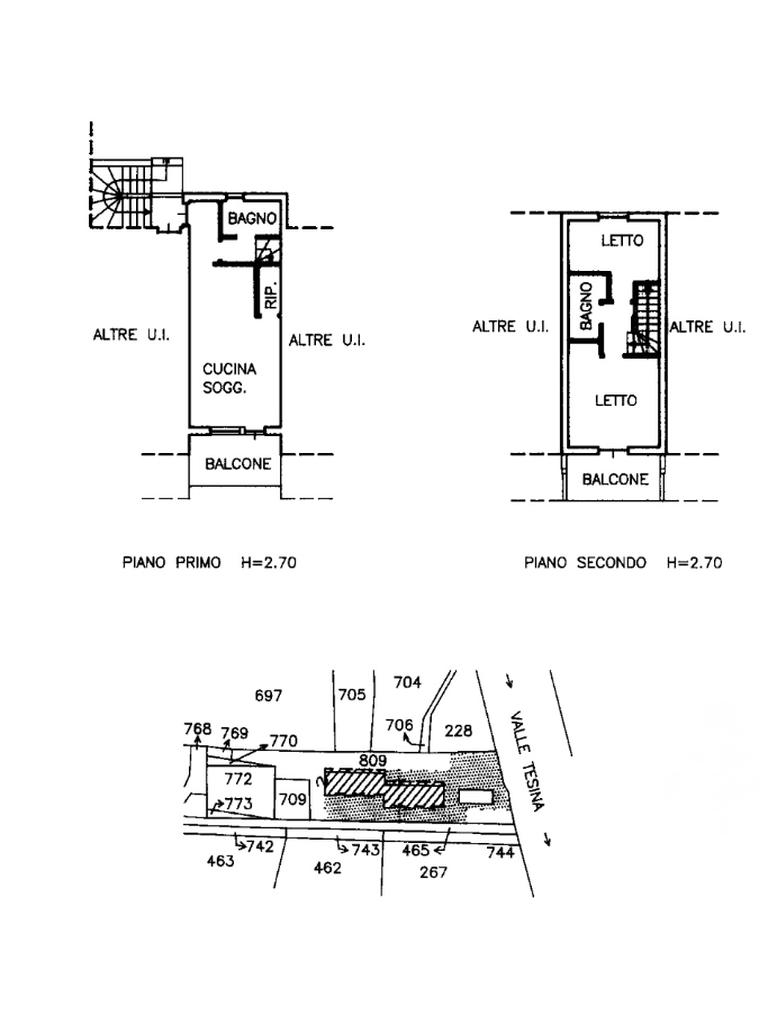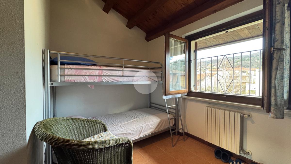 Secondo piano: camera singola con letto a castello, bagno, camera matrimoniale con balcone vista lago