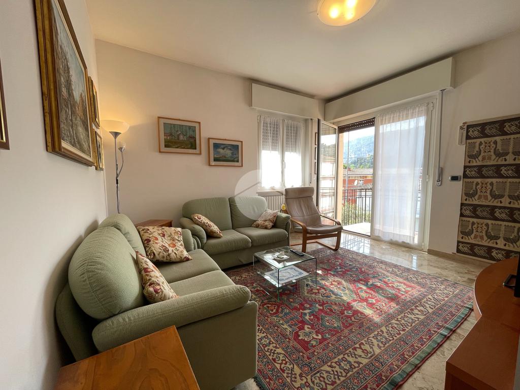 Soggiorno luminoso con accesso al balcone, dal quale si gode una vista aperta sulle “Sengie” ed uno scorcio di lago