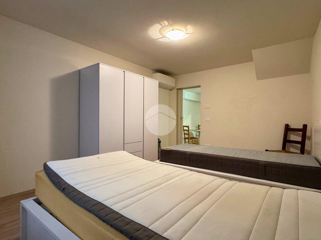 Al piano terra, l’immobile si apre con un doppio ingresso e si compone di un locale di circa 13,5 mq (soggiorno o camera da letto), un pratico disimpegno e un bagno con doccia.