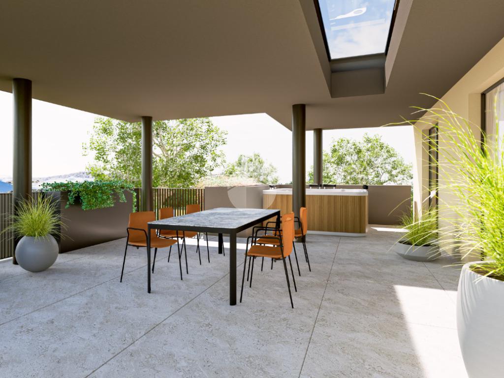 L’unità al primo piano terra gode comunque di un piccolo giardino privato di quasi 40 mq ed è caratterizzato dall’enorme terrazza (65 mq) su cui affaccia l’ampia zona giorno open-space caratterizzata da grandi finestre dalla tripla esposizione che donano luminosità agli ambienti; sullo stesso livello troviamo tre camere da letto (due matrimoniali e una doppia), due bagni con finestra ed un pratico disimpegno. Al piano terra si trova un comodo garage di quasi 25 mq.