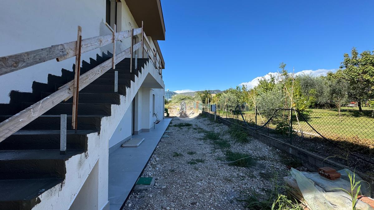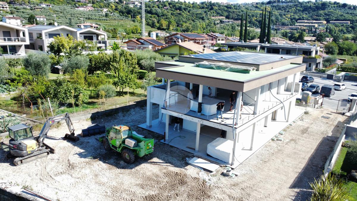 La nuova costruzione si trova nel nuovo, signorile quartiere del paese, caratterizzato dalla presenza di case singole e bifamiliari e strade a senso unico a bassa percorrenza. I principali servizi del paese si possono raggiungere anche a piedi, il quartiere è collegato anche ai sentieri che portano sulla Rocca di Garda o in valle dei Mulini.