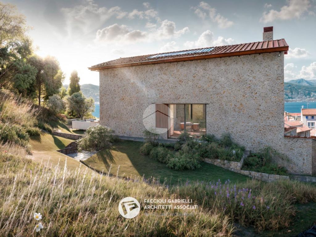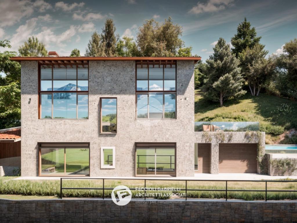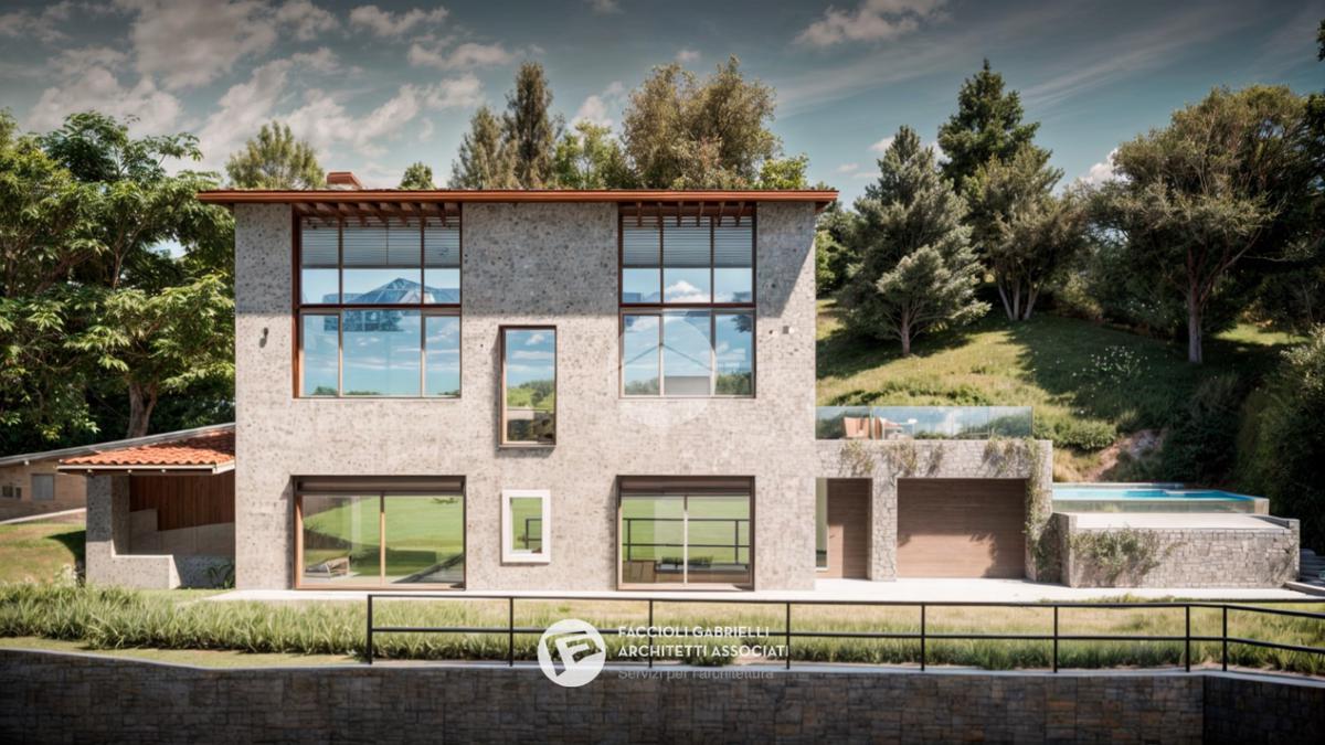 Il progetto, redatto da un conosciuto studio di architettura, prevede un perfetto mix tra materiali tradizionali (pietra, travi a vista e mattoni) e comfort moderni oltre che grandi aperture per donare luminosità agli ambienti ma, soprattutto, per godere della bellissima vista sul lago di Garda.