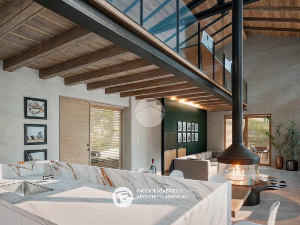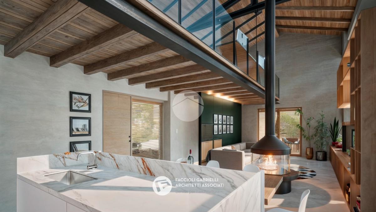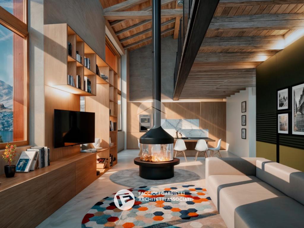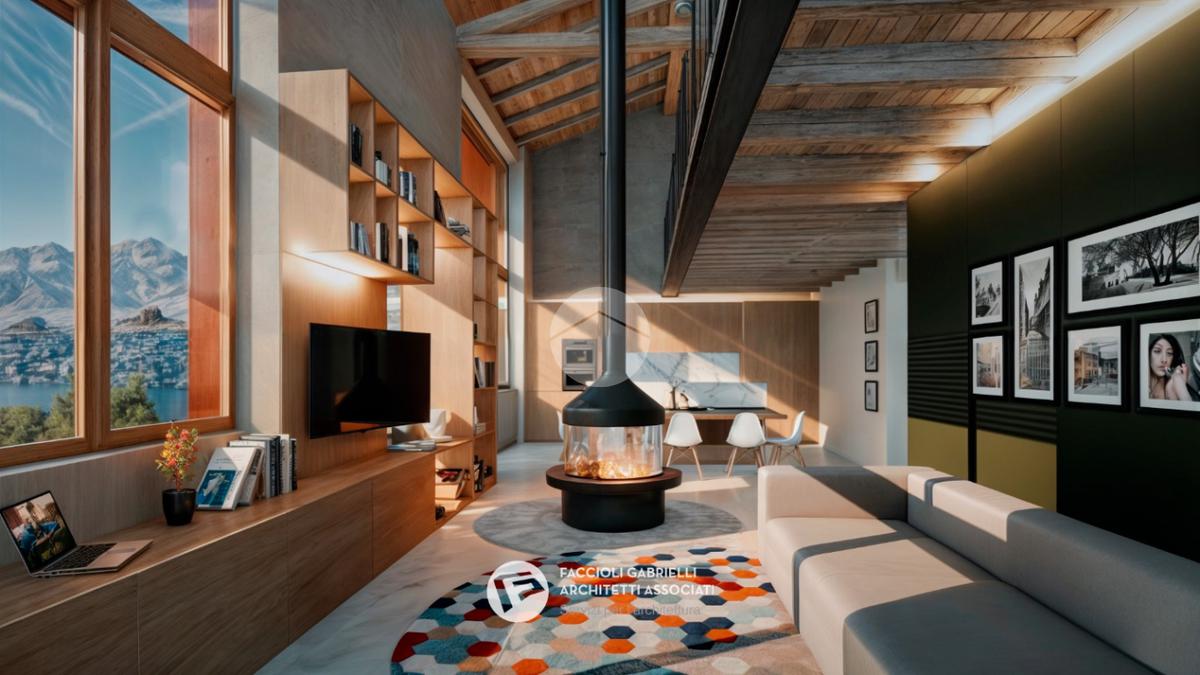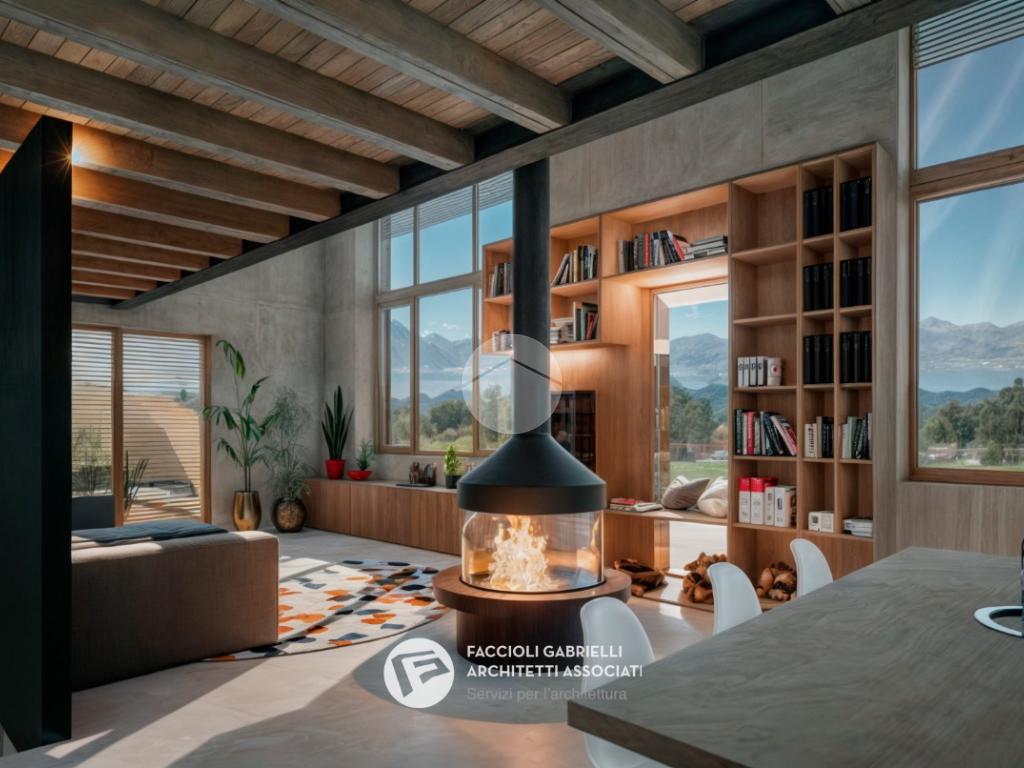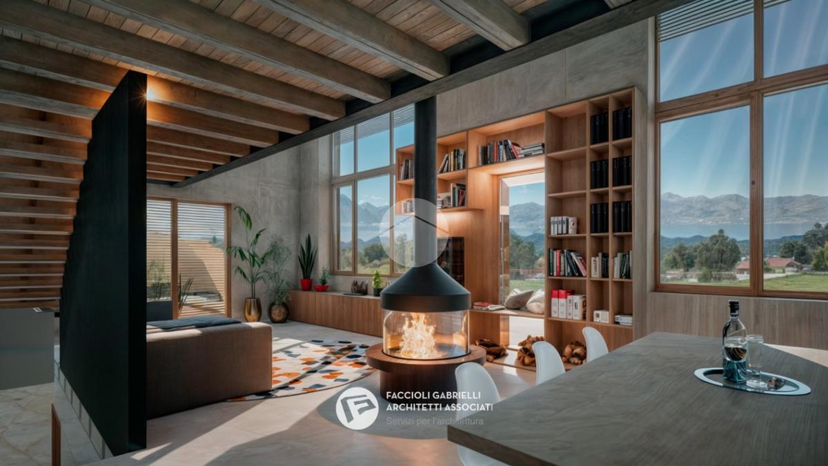 Al piano primo (terra a monte) due grandi finestre affacciate sul Lago di Garda donano luminosità e valore alla grande zona giorno open-space di quasi 60 mq calpestabili, una grande porta finestra affaccia sulla terrazza ricavata sopra il garage. Al piano superiore è previsto un soppalco affacciato sul lago e sulla zona giorno. Questa zona può essere un prestigioso studio, una zona meditazione, una hobby room oppure una zona per viziare gli ospiti.